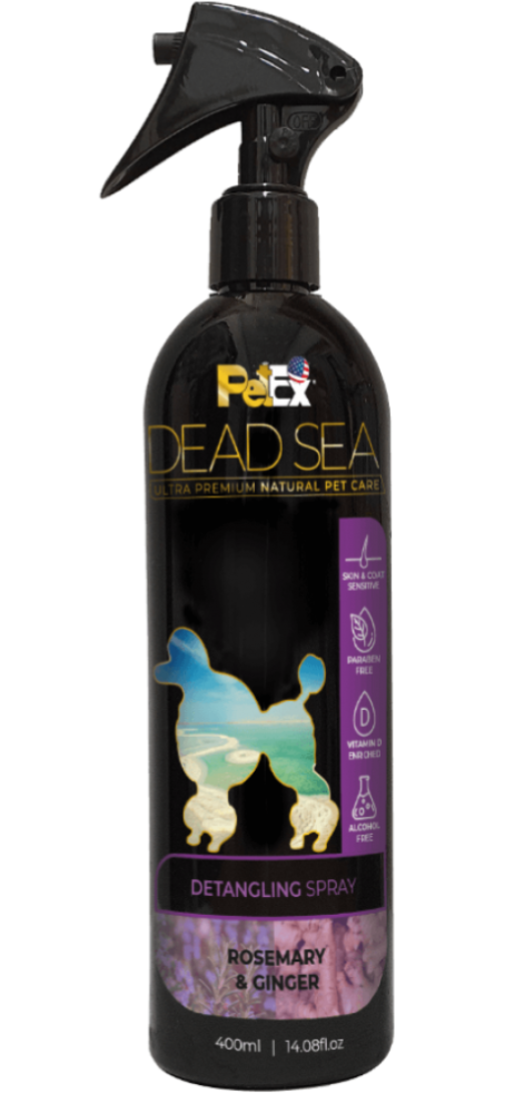 Detangling spray for dogs and cats based on Ginger and Rosemary Extracts enriched with Dead Sea Minerals and Keratin. Detangles the coat for easier combing while keeping it soft and shining.