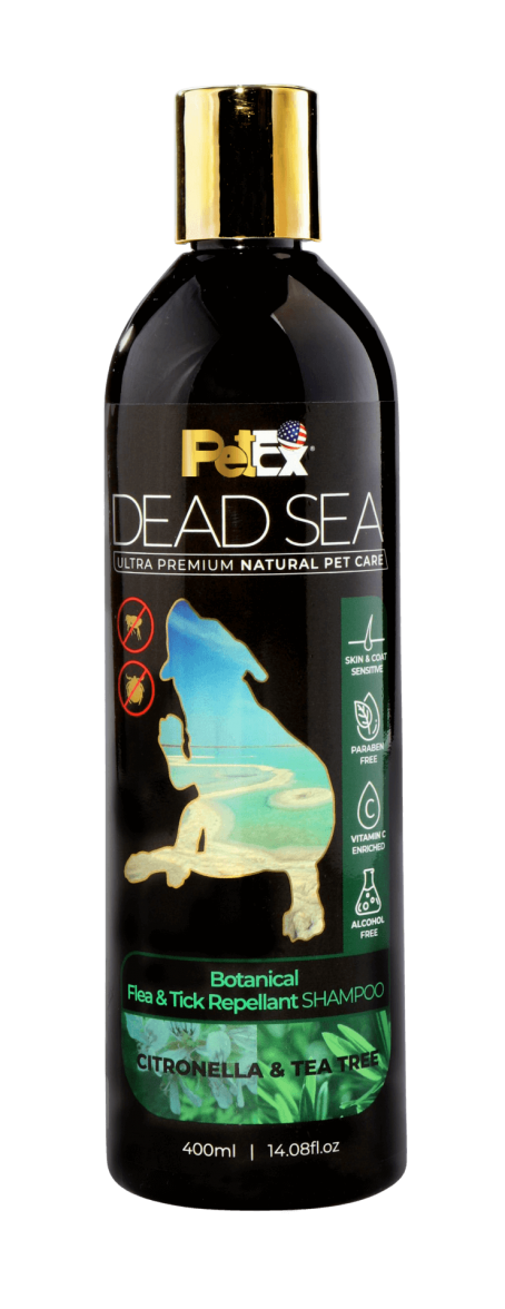 Our Flea Repellant Shampoo enhanced with Dead Sea minerals and natural active ingredients helps repel fleas and ticks from your pet whilst maintaining their coat soft and shiny.